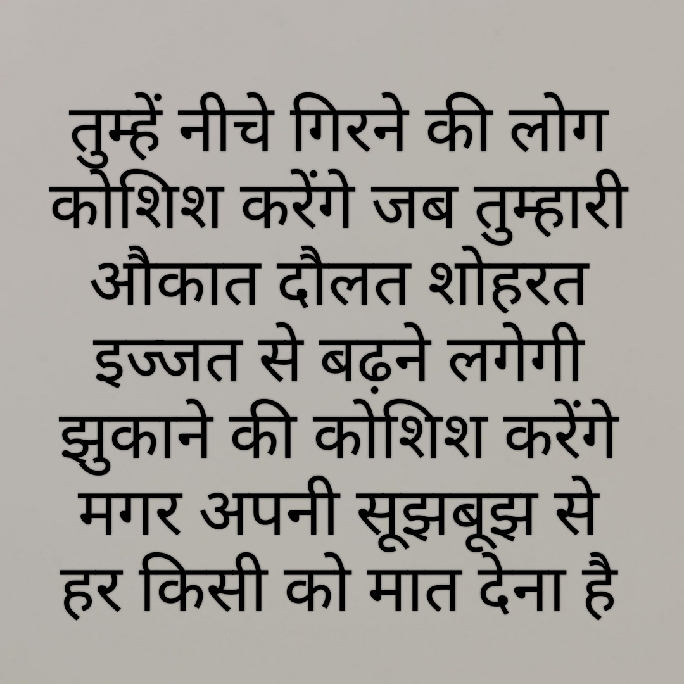 चाहे कितना भी मुश्किलें रास्ता रोके खुद को झुकने नहीं देना जब तक सफलता मिल नहीं जाती खुद को रुकने नहीं देना एक दिन खुशियां तुम्हारी चौखट पर दस्तक जरूर देने वाली है